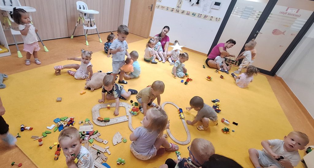 Dzieci rozpoczęły swoją nową przygodę odkrywając żłobkowy świat. Naszym celem jest, by każdy maluszek czuł się bezpiecznie, spokojnie, otoczony troską.