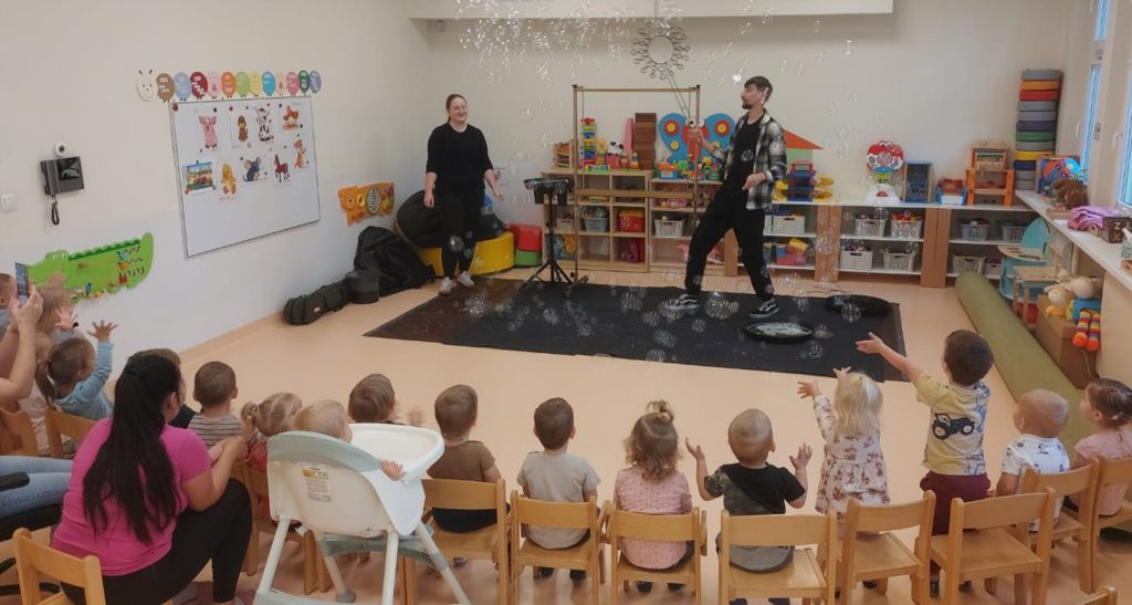 W październiku w naszym żłobku odbył się magiczny pokaz baniek mydlanych.