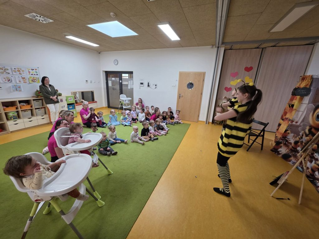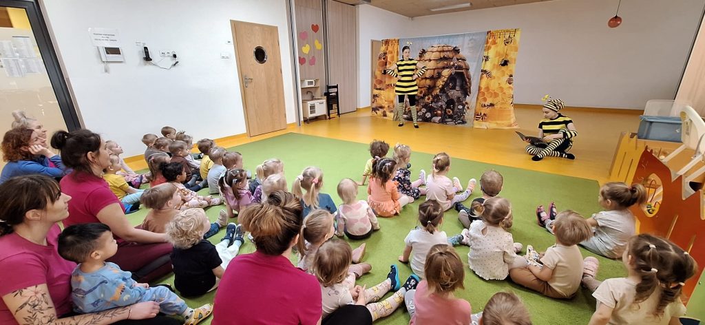 Dzieci z dużym zainteresowaniem oglądały spektakl, aktywnie w nim uczestniczyły i reagowały na bohaterów. Przedstawienie poruszało temat używania miłych słów, życzliwości oraz budowania pozytywnych relacji.