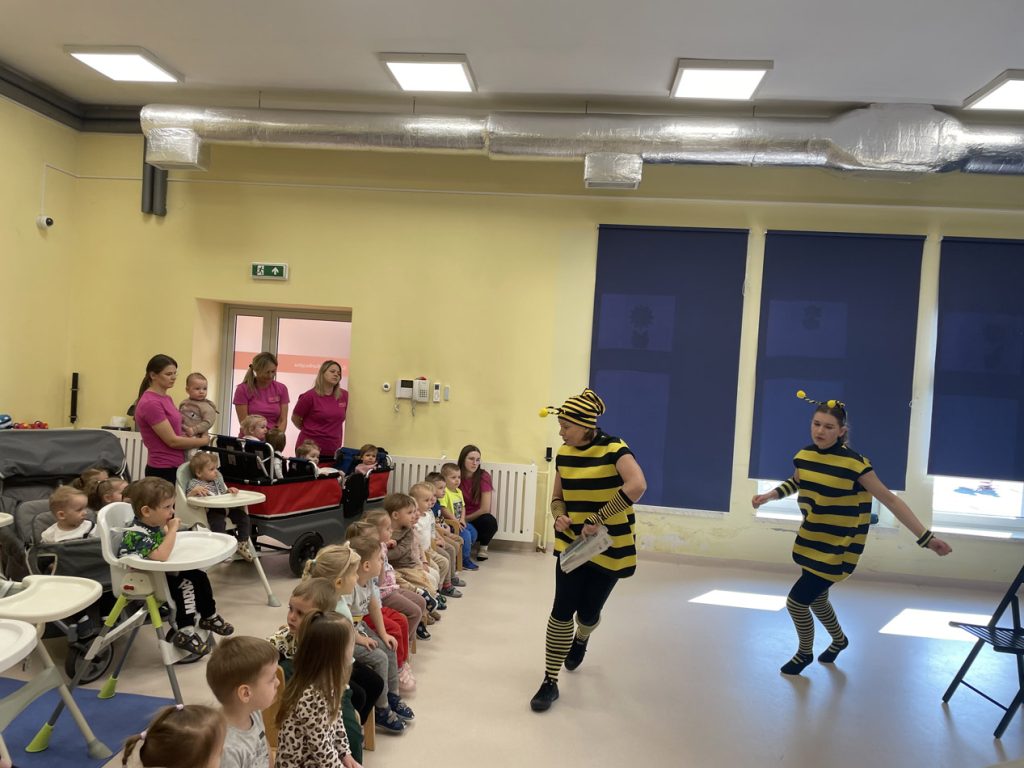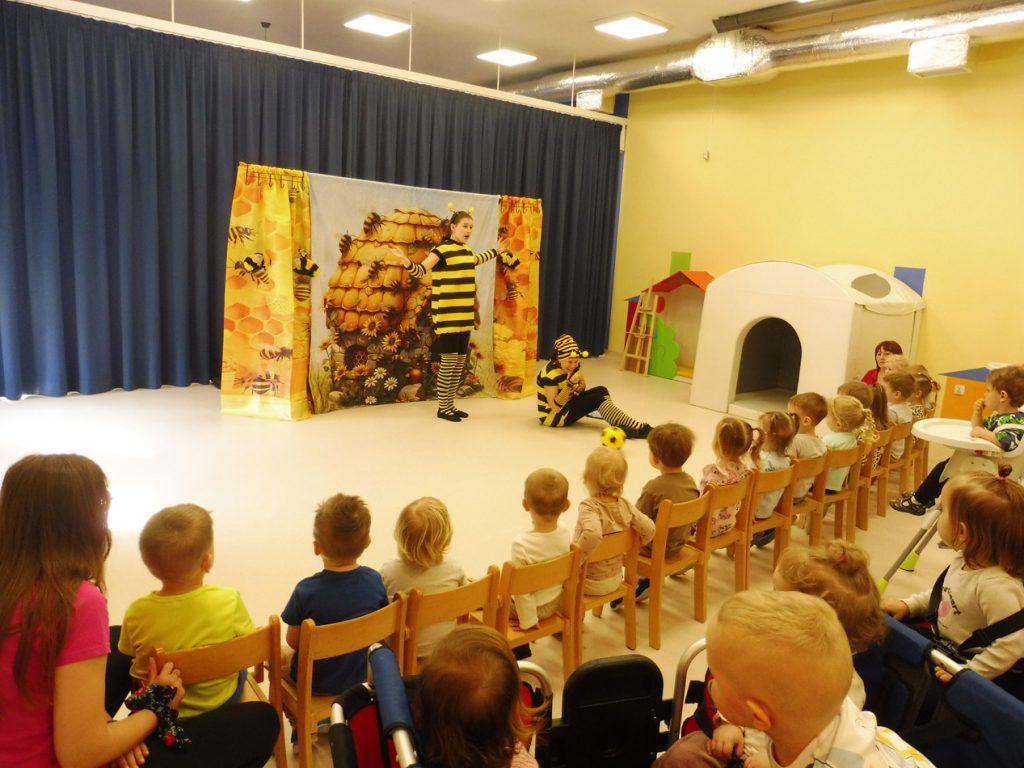 Dzieci z dużym zainteresowaniem oglądały spektakl, aktywnie w nim uczestniczyły i reagowały na bohaterów. Przedstawienie poruszało temat używania miłych słów, życzliwości oraz budowania pozytywnych relacji.