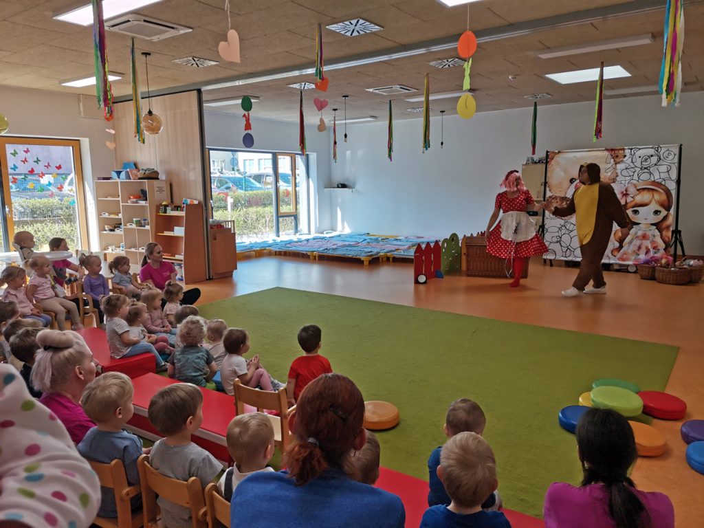 Maluchy z zaciekawieniem obserwowały inscenizację, śpiewały i bawiły się razem z aktorami.