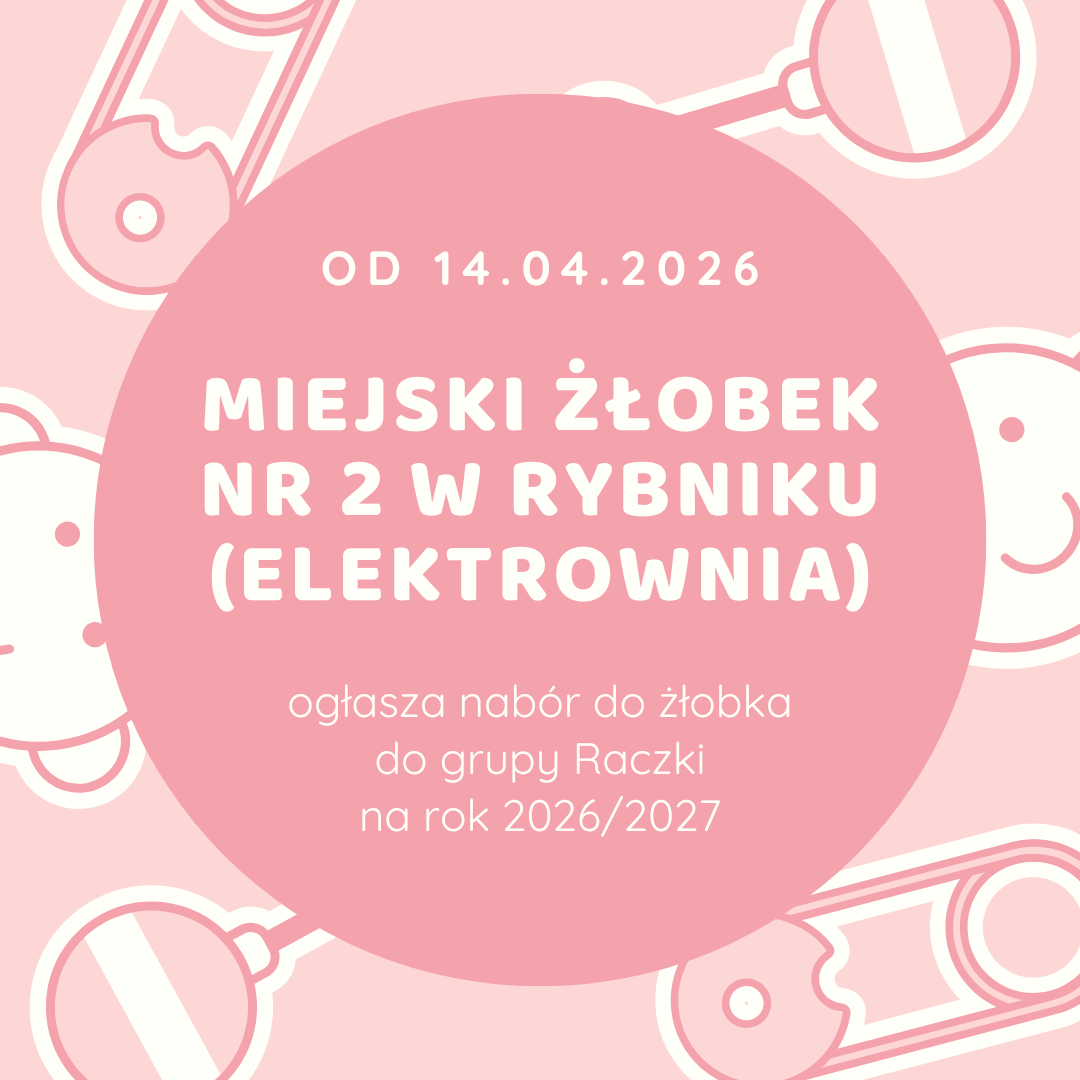 Informujemy, iż od 14 kwietnia 2026 r. rozpocznie się nabór do Miejskiego Żłobka Nr 2 (Elektrownia).